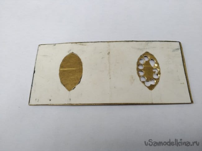 После этого трафарет прикрепляется к листу латуни при помощи клея или двустороннего скотча.