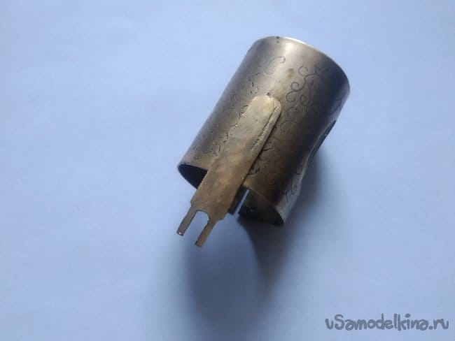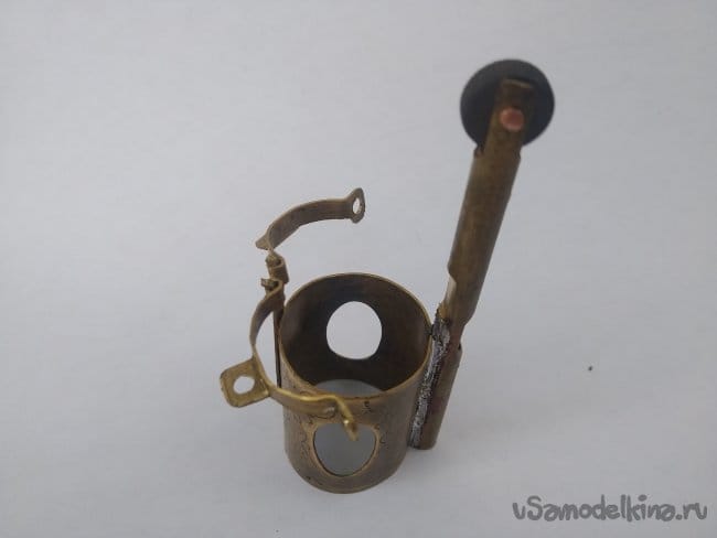 После этого хомут и механизм для высекания искр припаиваются к кожуху.