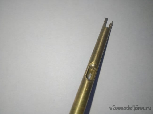 В трубке делается пропил под колёсико и окошко для установки кремня, после чего внутрь трубки устанавливается бронзовая стойка, так что бы её нижний край совпадал с верхним краем окошка для кремня.