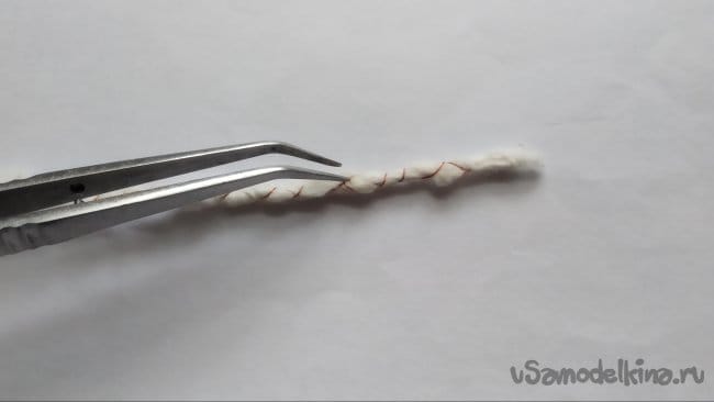 После этого необходимо изготовить фитиль, для этого я воспользовался ватой и тонкой медной проволокой проволока необходима для упрочнения фитиля и для обеспечения возможности его подъема по мере выгорания.