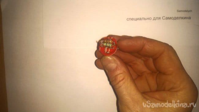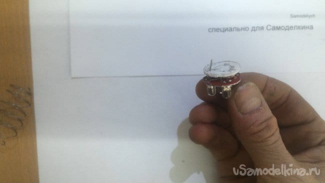 Надеваем второй вырезанный кружок на торчащий контакт
