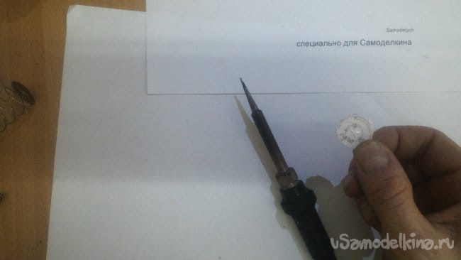 Теперь приступаем к доработке пружин. Их необходимо немного деформировать с одного конца так, чтобы в центре образовалась маленькая «площадка». В неё должен будет упираться контакт батареи. А противоположный конец пружинки нужно подготовить под пайку - зашкурить и залудить флюсом и оловом.