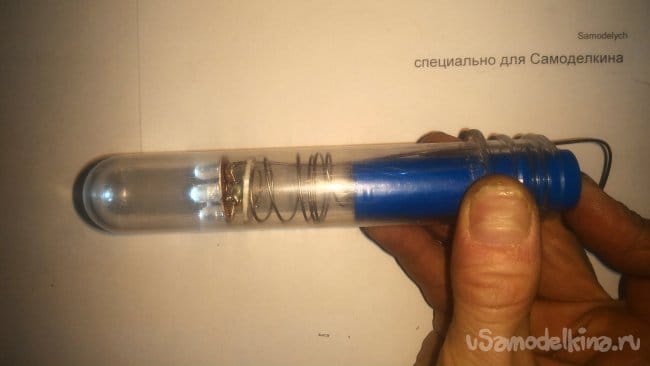 И изолируем места пайки термоусадкой, а заодно и защищаем стеклянный корпус элемента.
