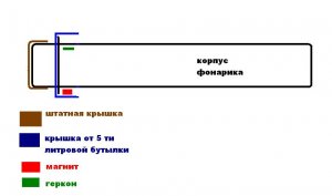 Закручиваем крышку и проверяем работу фонаря, проводя магнитом над тем местом, где внутри находится геркон. При поднесении магнита к герконовому замыкателю фонарь должен включаться,