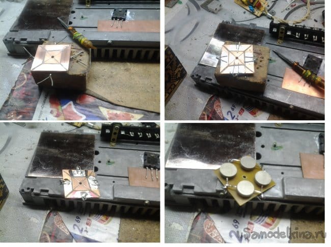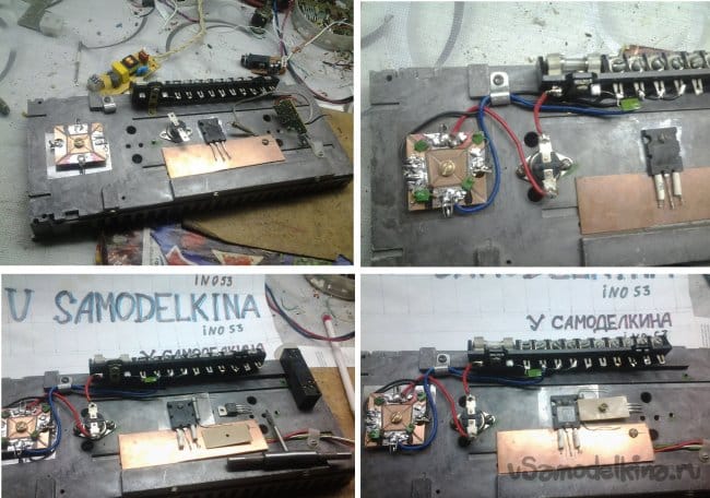 Переходная плата, слюда для изоляции от радиатора, паста КПТ-8 - ничего особенного. Работа пошла.