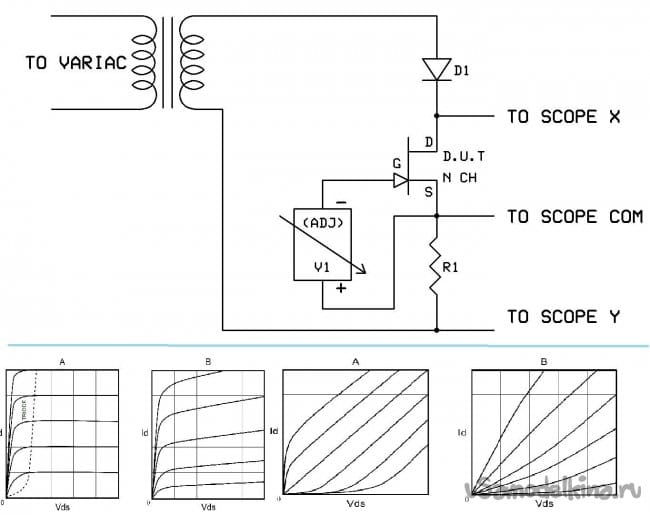 Он загорелся желанием изготовить на его основе усилитель, супер простой и супер же качественный. Что ж, понять его можно. После долгой преамбулы он начал описание работы с того, что «я построил устройство, показанное на рисунке 1. ©» и снял характеристики транзистора. Скучную информацию для спецов пропустим, вот здесь без подробностей схема и характеристики.