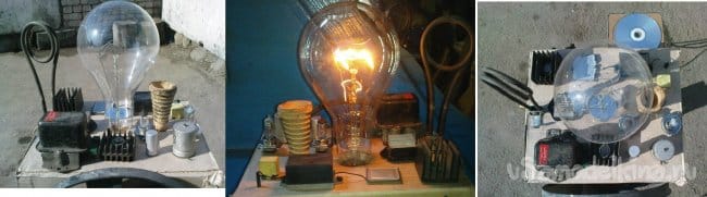 Испытываем с разными лампами на эквиваленте нагрузки.