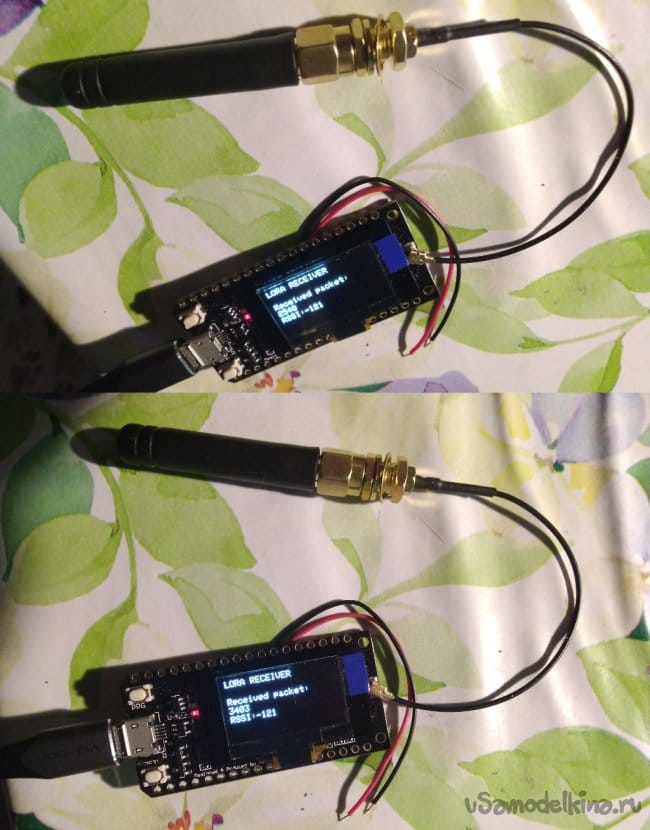 Пример успешной передачи напряжения питания LoRa-модуля и вывода на OLED-экран с помощью библиотеки Arduino-Lora