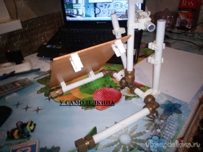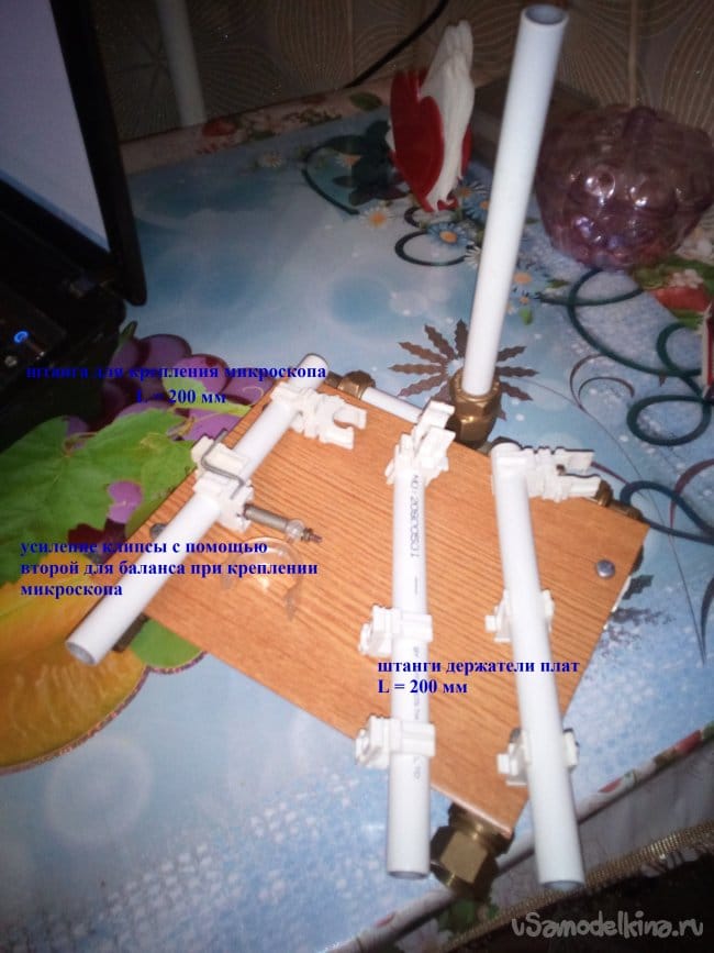 Заменил в квартире трубы металлопластиковые D16 мм на полипропиленовые D20 мм. Появилась труба и фитинги на D16 мм. Решил использовать для сборки штатива под микроскоп из Китая.
