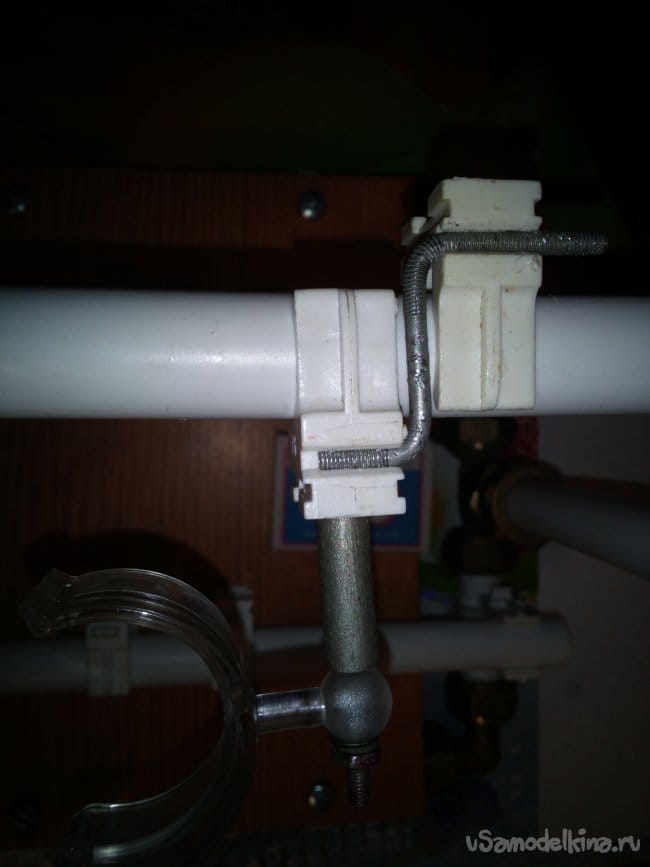 Затем надо соединить 2 клипсы крестом при помощи болта. Таких сборок нам понадобится 3 штуки.