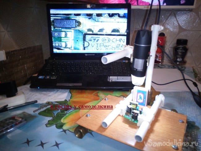 Микроскоп у меня служит помощником для просмотра в увеличенном виде smd-компонентов, мелких деталей на экране ноутбука. Подставка в комплекте с микроскопом пластмассовая, очень хлипкая, постоянно сбивается изображение.
