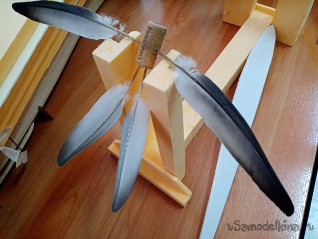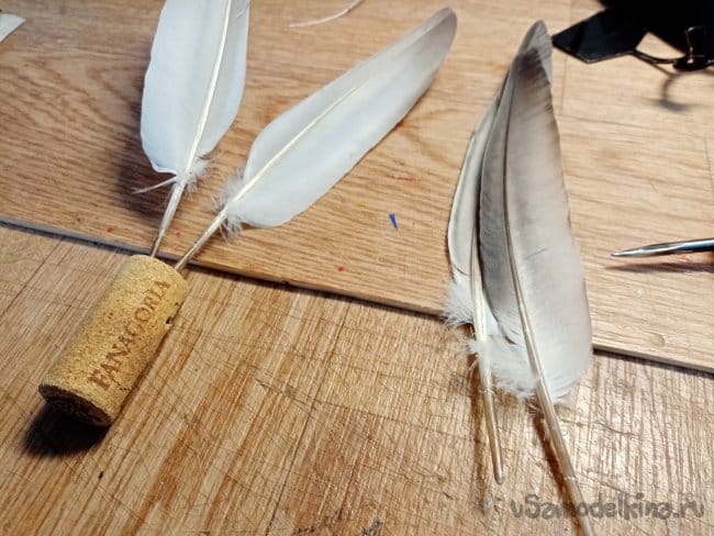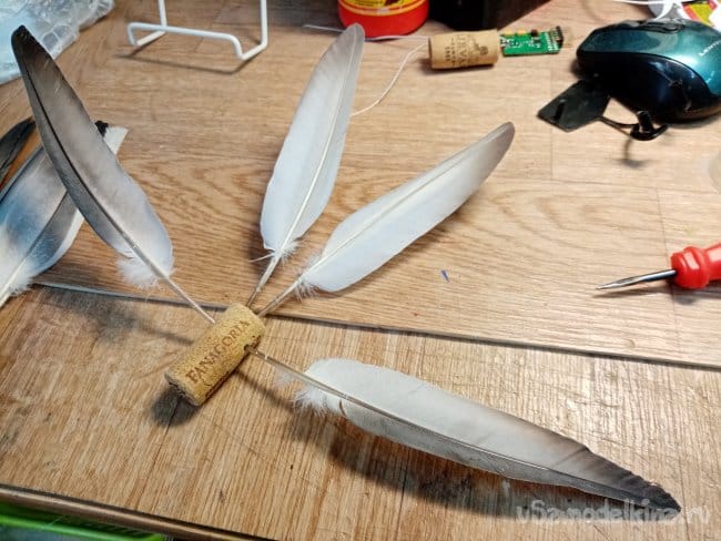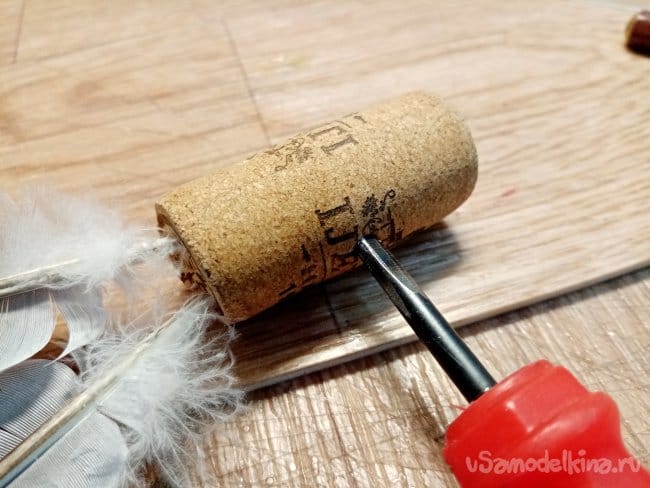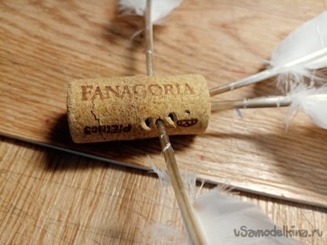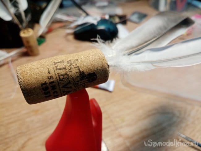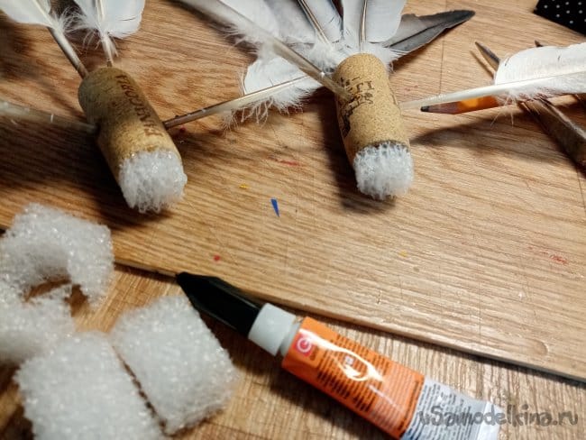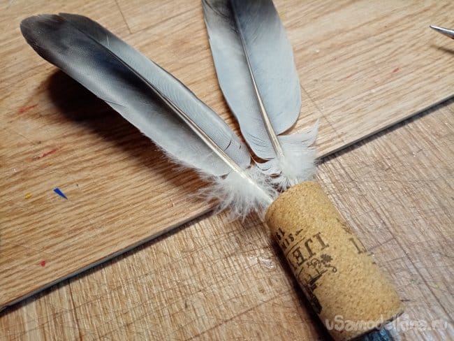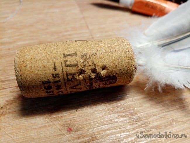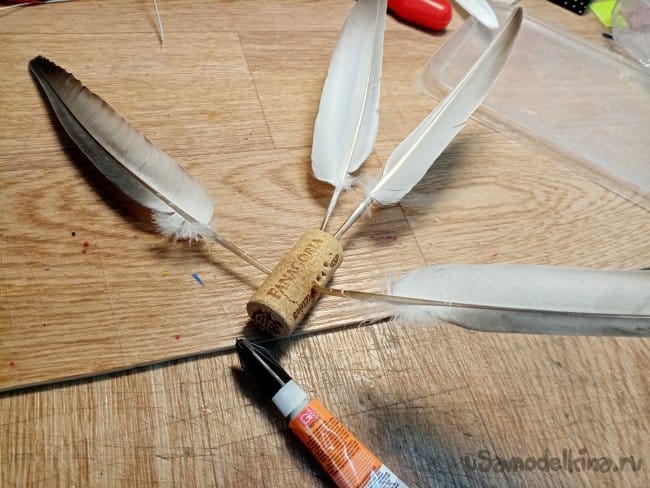 - Клей, можно и без него. Перья достаточно прочно держаться в пробке.