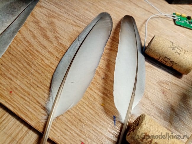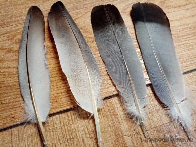 Разложил свою коллекцию на столе начинаю подбирать парные маховые перья. Одинакового размера и крутки. Понятно, что из правого и левого крыла.