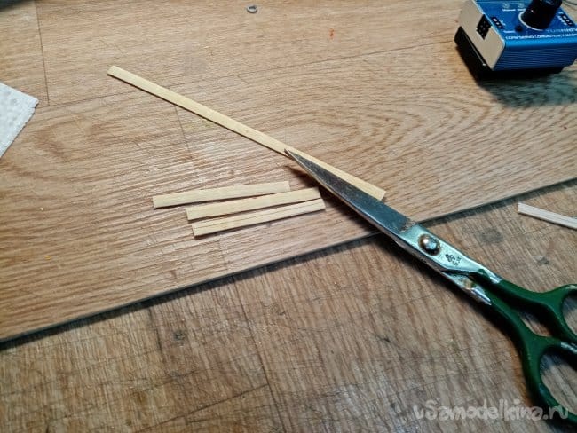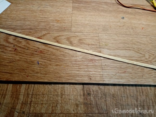 Из бамбуковой пластинки вырезаю грузик с запасом. В процессе настройки можно будет немного отрезать. Все резы выполняю обычными ножницами.