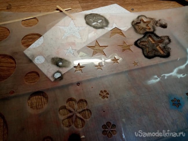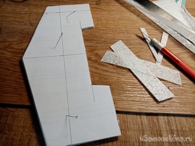 Закрепляю на бракованном листе иголками и обрезаю по контуру.