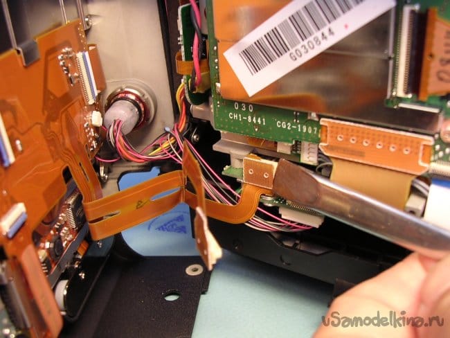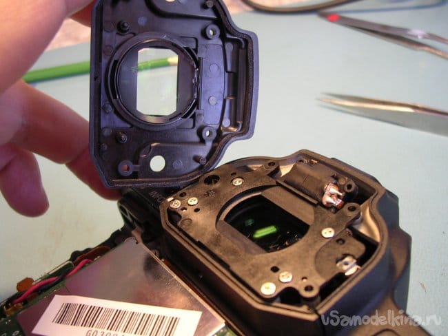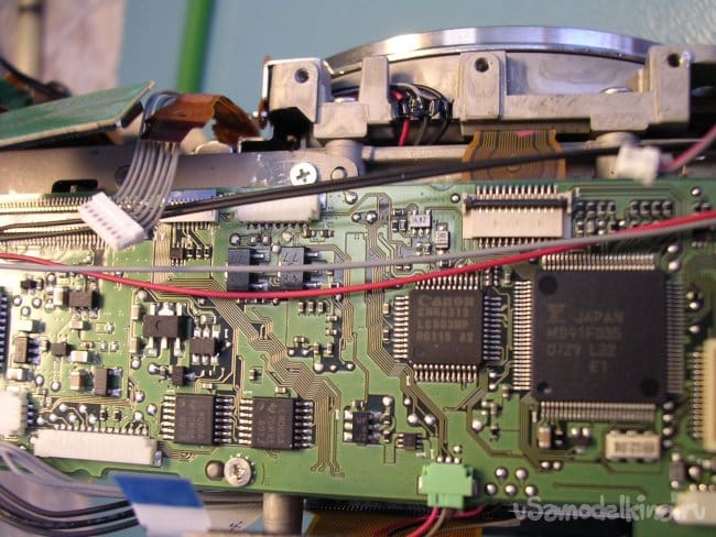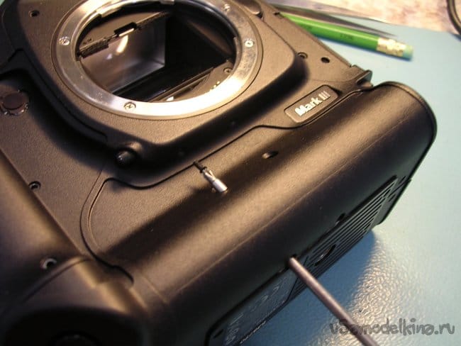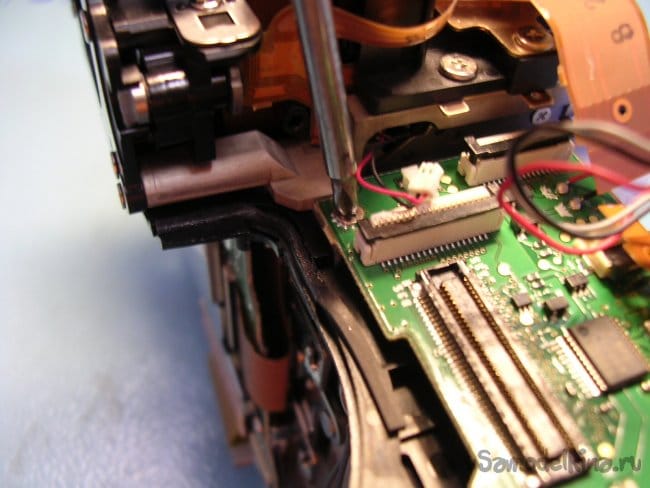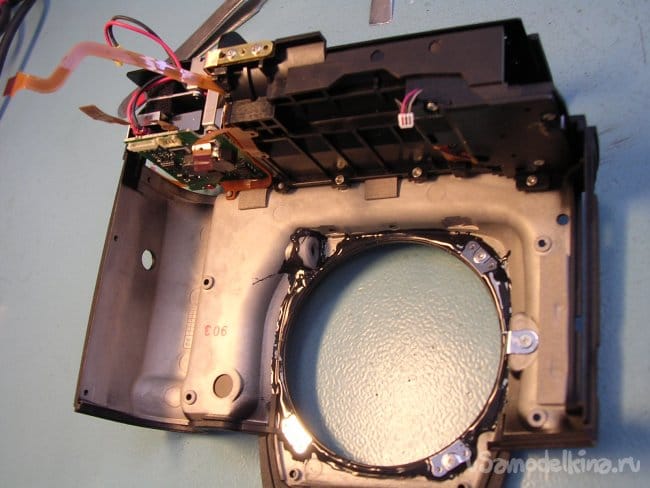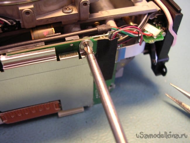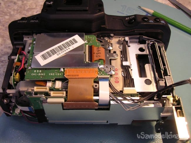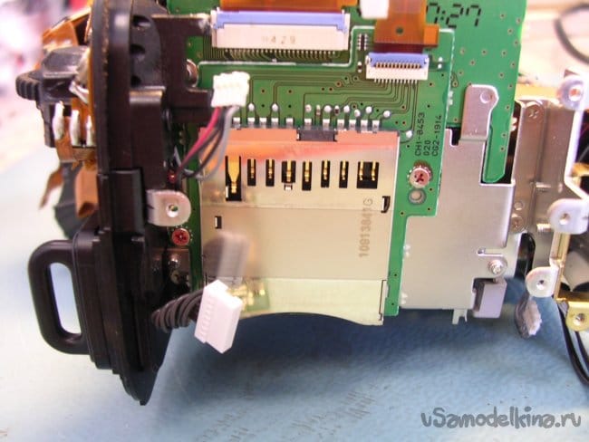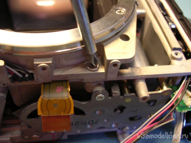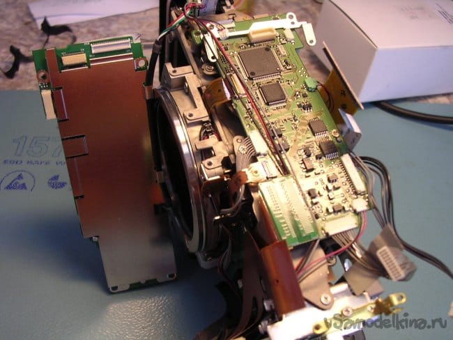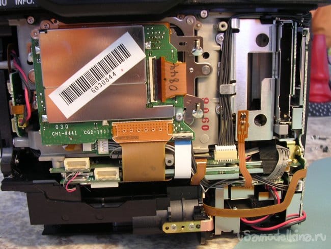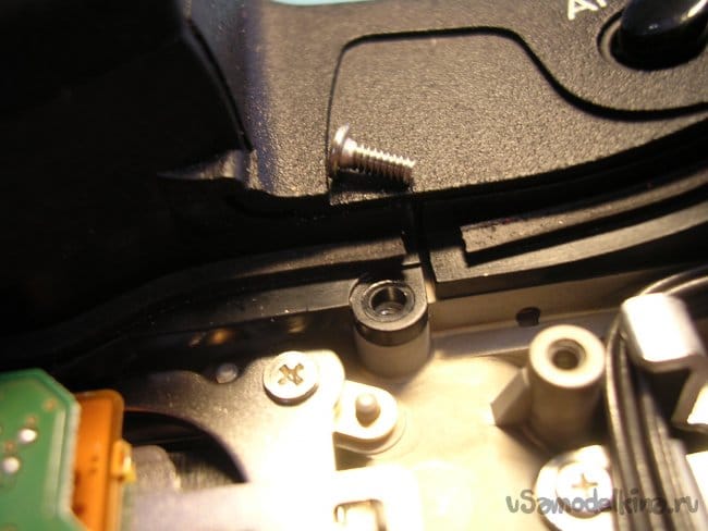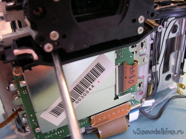 Все винтики и болтики нужно запоминать или записывать. Они все разные, при сборке нужно закручивать в нужные места! Можно раскладывать по кучкам на липкую ленту. Иначе можно при установке длинного болтика проткнуть шлейф ил не дай бог повредить основную плату, а там два процессора Digic III! Про них рассказывал выше.
