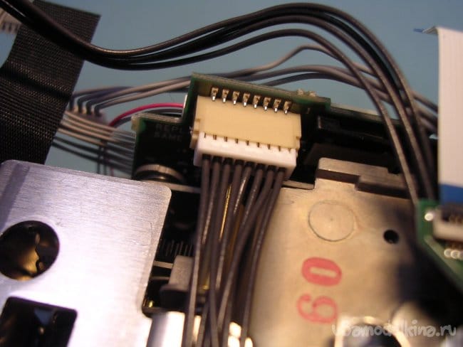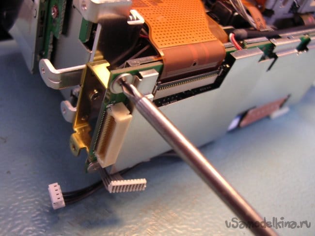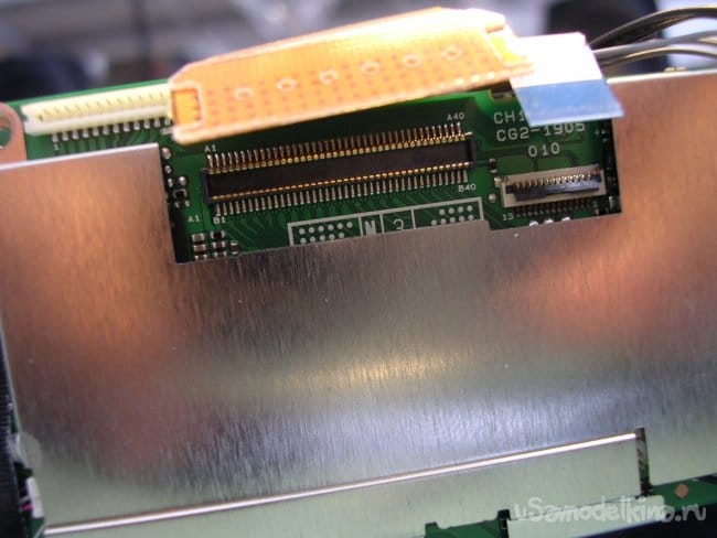 Блок повис на шлейфах, очень аккуратно ворочаю тушку и продолжаю разъединять и вынимать.