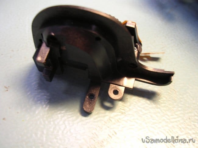 Откручиваю блок кнопки спуска. Тоже достаточно хорошо спроектирован снимается просто. Для замены. Думаю в работе это самая нагруженная деталь.