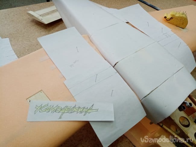 Затем устанавливаю шаблоны по меткам на крыльях, размечаю и подрезаю кончики.