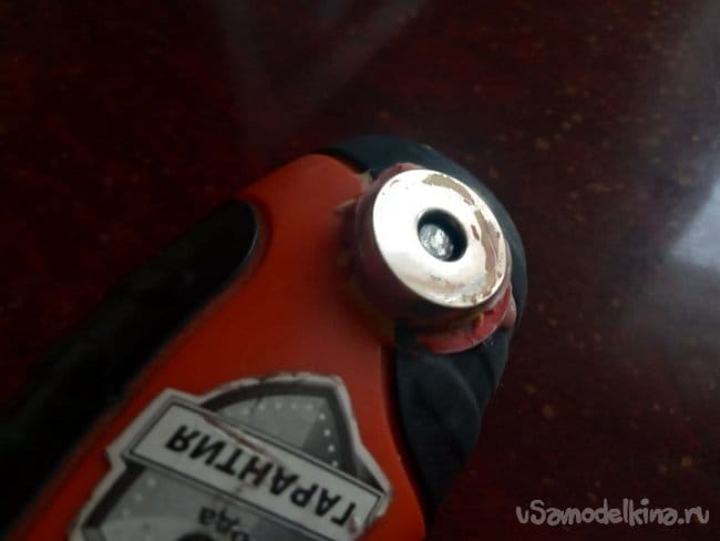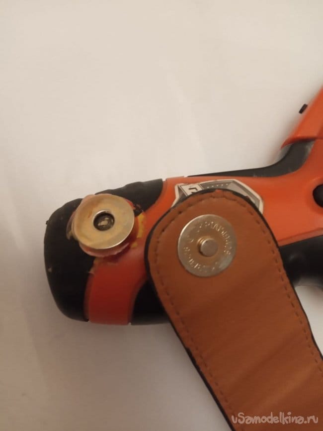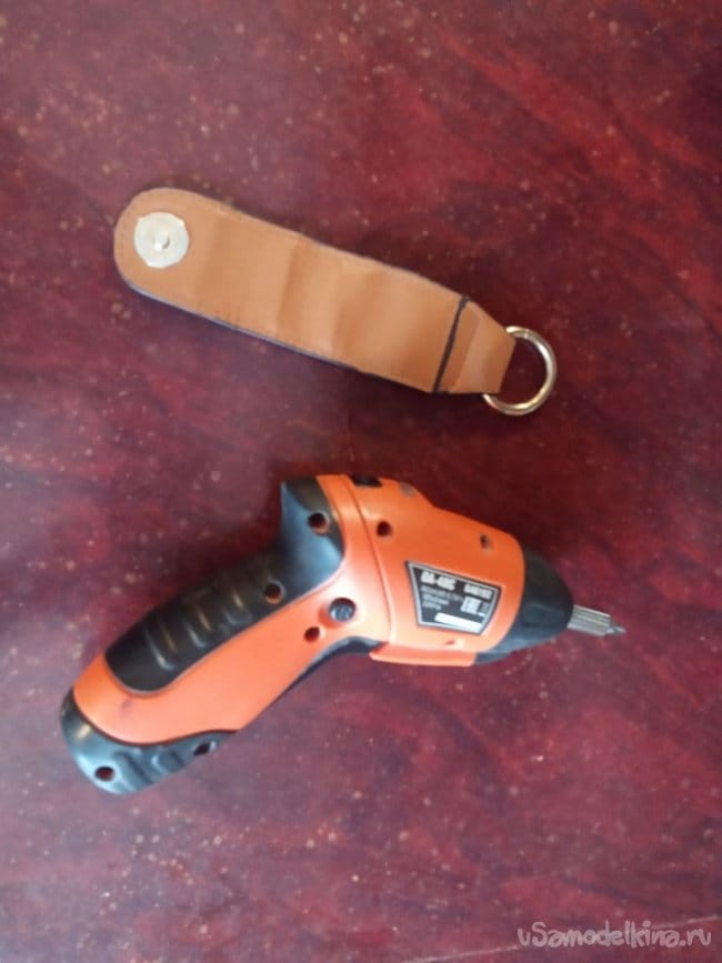 «Шурика» надо постоянно куда-то девать, вставляя саморез, и в то же время он должен быть под рукой, чтобы его можно было быстро достать и вкрутить саморез. Кстати говоря, саморезы тоже должны быть всегда под рукой, но об этом в следующей самоделке. В кладовке была найдена фигнюшка от старой сумочки жены, предположительно это клапан-закрывашка, на магнитах, возможно, неодимовых, а, может, и нет. Все это я заботливо срезал с сумки несколько лет назад, и вот нашлось ему применение.