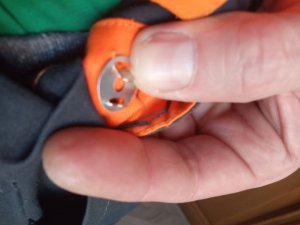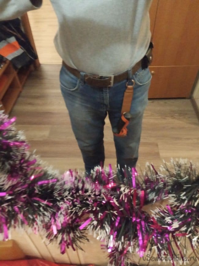 Полдела сделано. Осталось как-то манерно приделать его на одежду, причем чтобы это быстро снималось-одевалось и не терялось. К сожалению, карабинчиков дома не оказалось, пришлось применить мозг.