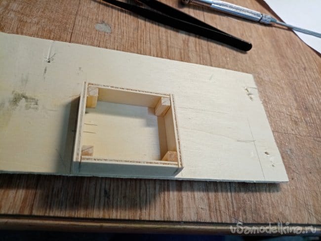 Он будет крепиться на винты к приклеенным отрезкам рейки в размер.