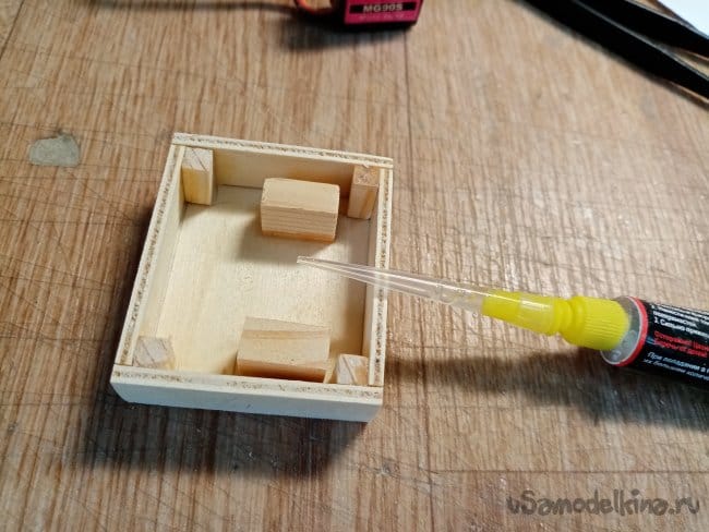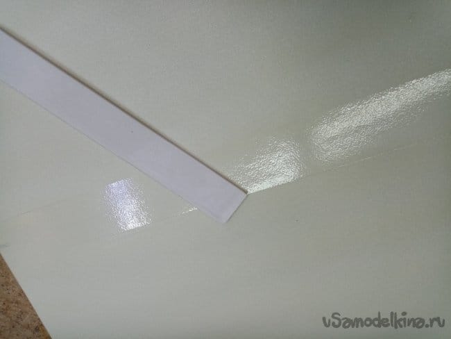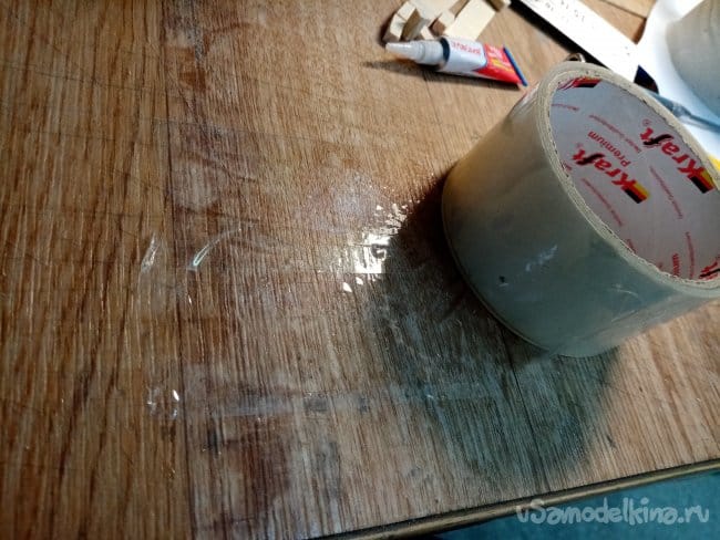 Собираю коробочку на циакрине. Для этого на линолеуме наклеиваю немного скотча, чтобы клей не прилипал.