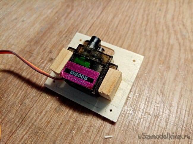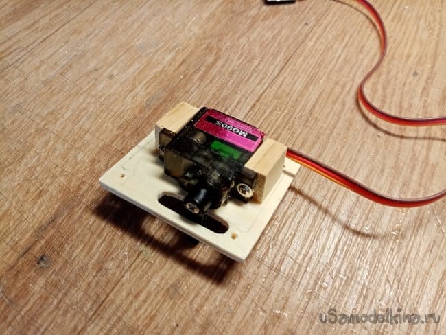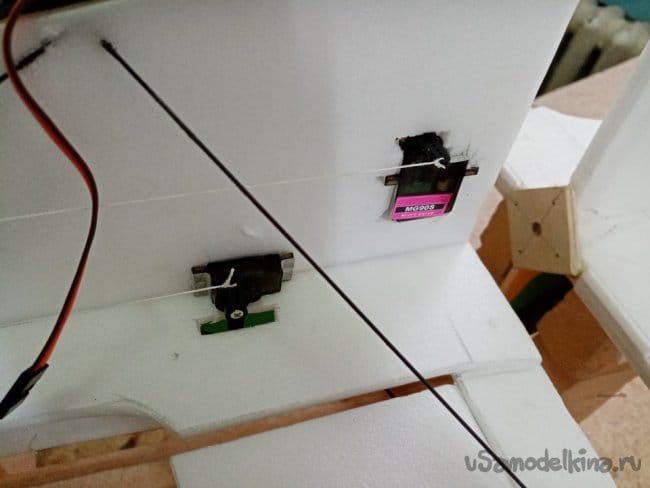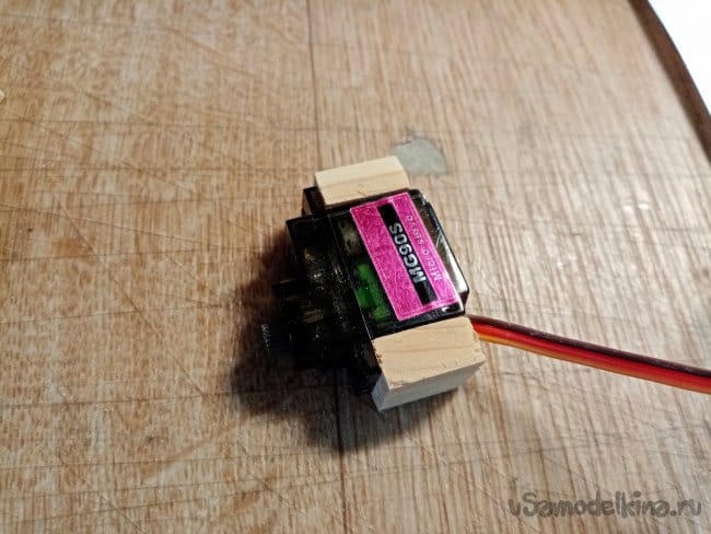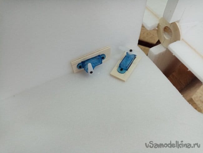 В картонном самолете устанавливал в специальные колодцы из картона. Для общего антуража. Сервопривод вклеивал на титане предварительно обернув малярным скотчем.