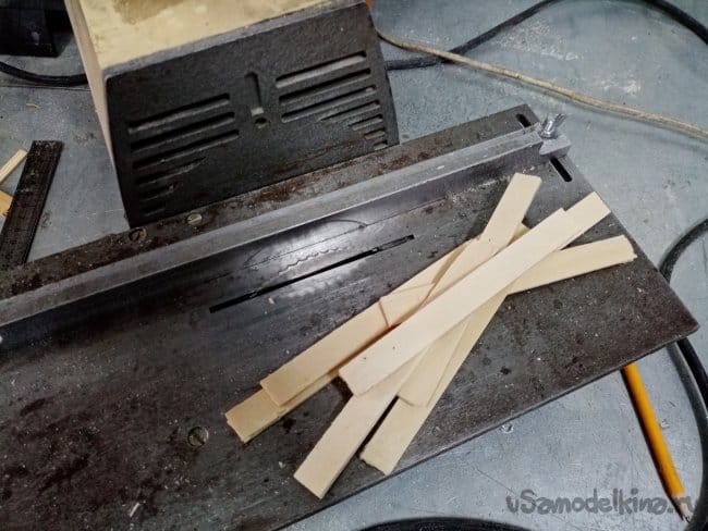 Распиливаю в размер заготовки для стенок коробочек. Готовлю вертикальные столбики. Шлифанул малость шкуркой.