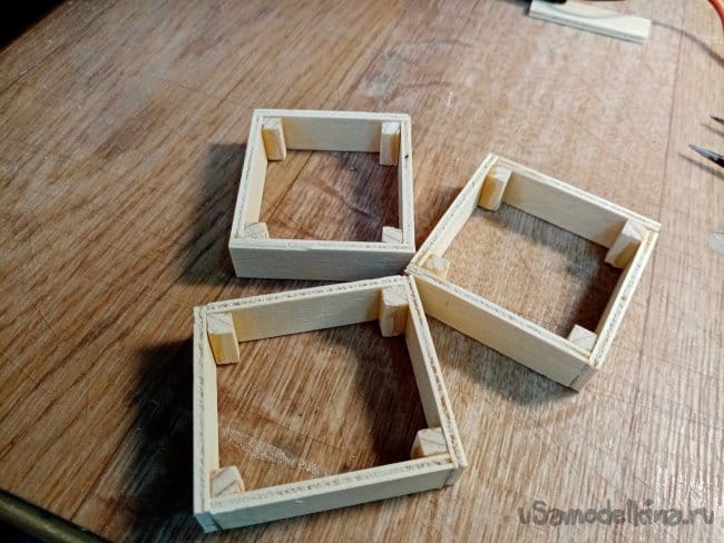 Затем нужно изготовить рамочку для закрепления крышечки. Нарезаю полосок из тонкой фанеры.