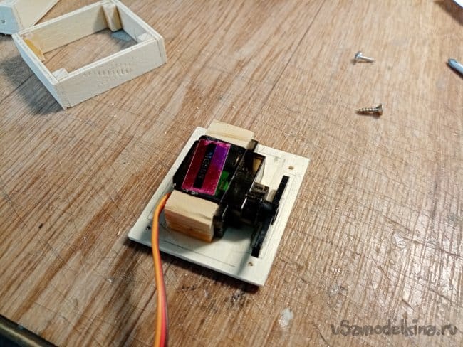 Затем рейку для вертикальных столбиков, они будут держать фанерную рамку и в них вкручиваются болтики крепления крышки с сервоприводом.