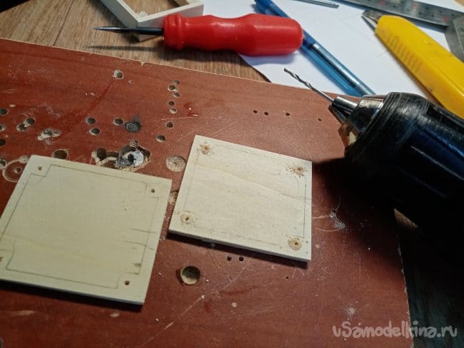 Размечаю расположение его на фанерке. Отверстие под качалку.