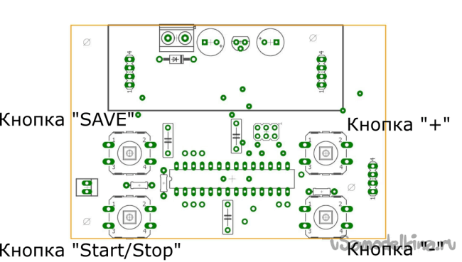 Копка "SAVE" - при долгом нажатии сохраняет в энергонезависимую память установленное значение. При коротком нажатии вызывает из памяти ранее сохраненное значение.