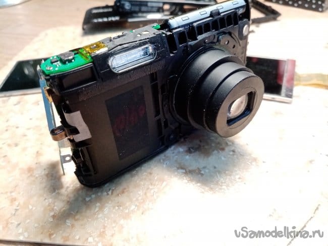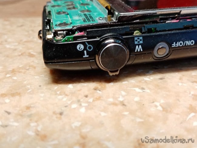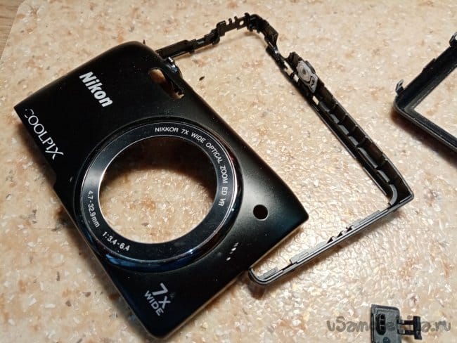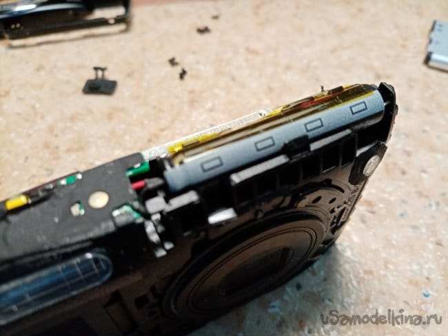 При неосторожном снятии передней панели можно сломать маленький пестик. Этот пестик управляет выдвижением объектива в положение "теле".