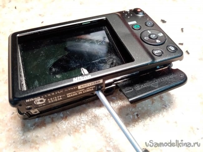 Первое движение извлекаю аккумулятор. Карты памяти нет.
