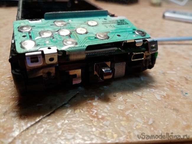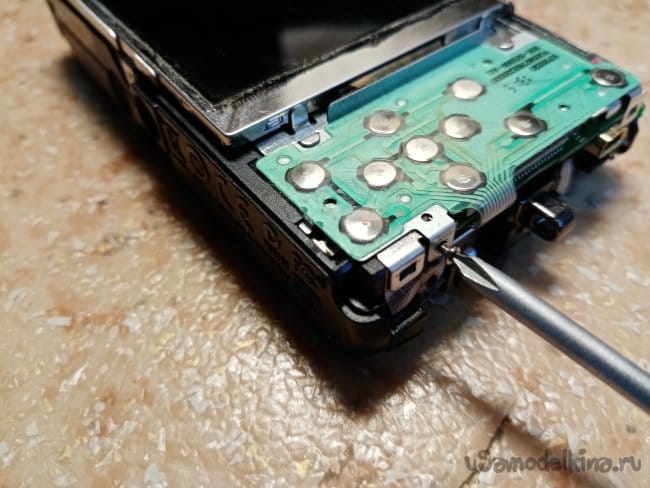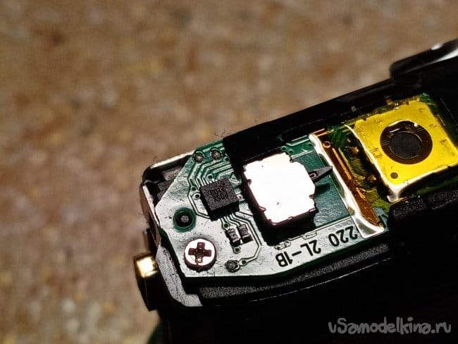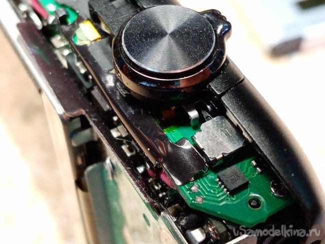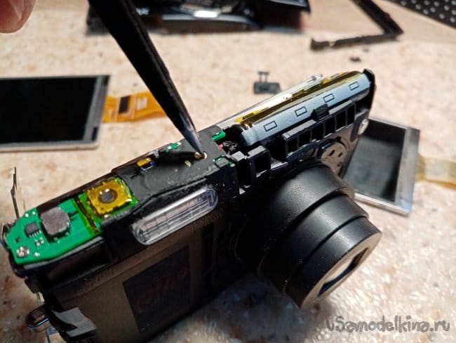 Разобранный аппаратик можно и так включить, жму пинцетом на кнопочку.