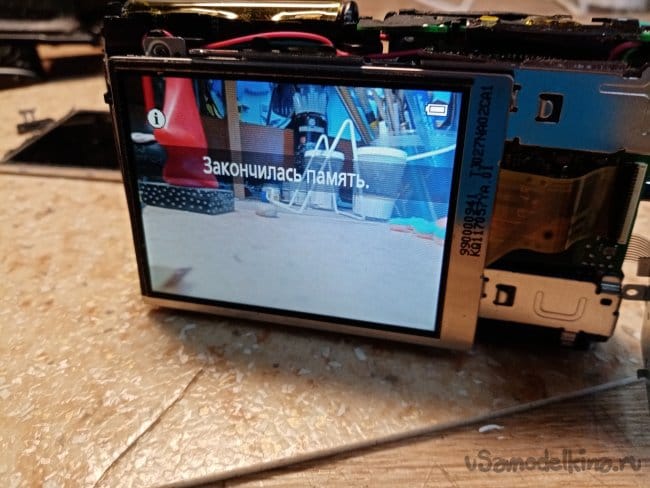 Зарядил акб, аппарат включается, светит разбитым дисплеем без картинки. Объектив нормально перемещается вспышка работает. После нескольких кадров аппарат зависает. Значит память полна, сбросить не могу, дисплей не работает однако.