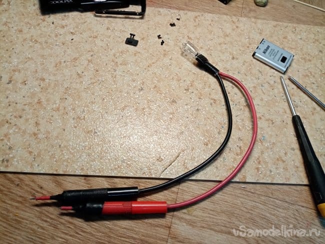 На кончиках проводов есть иголки, ими просто прокалываю изоляцию. Вообще-то, конденсатор можно и не разряжать, дальше я разбирать не буду. Мне нужна только задняя сторона тушки, заменить битый дисплей. Но мануалы по ремонту не дураки писали, это я Вам конкретно говорю. Написано разрядить, разряжаю лампочкой и совсем не хочется разрядить собой.