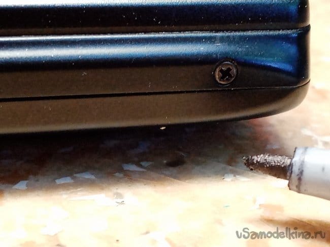 У этой модели есть один секретный болтик, крепления панели корпуса. Под крышкой разъемов.