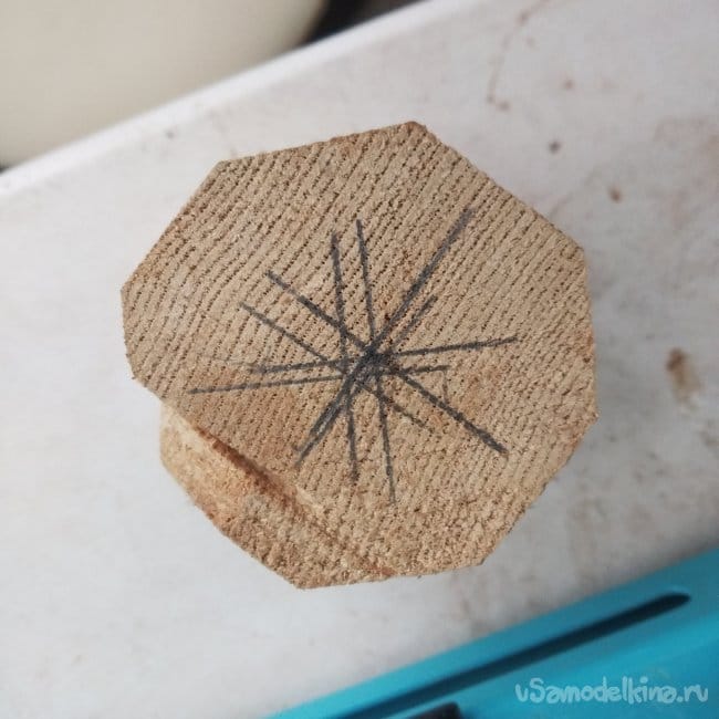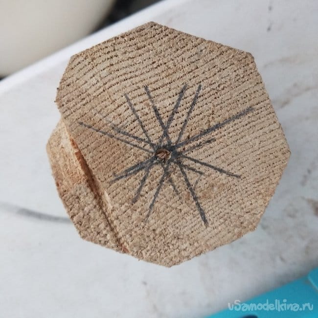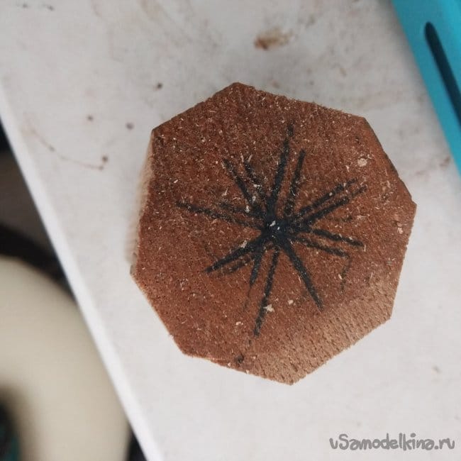 С другой стороны я тоже разметил центр, чтобы вбить шипастую фигню для станка. Как она называется, я точно не помню.
