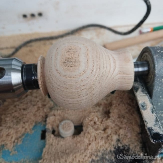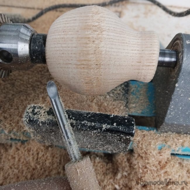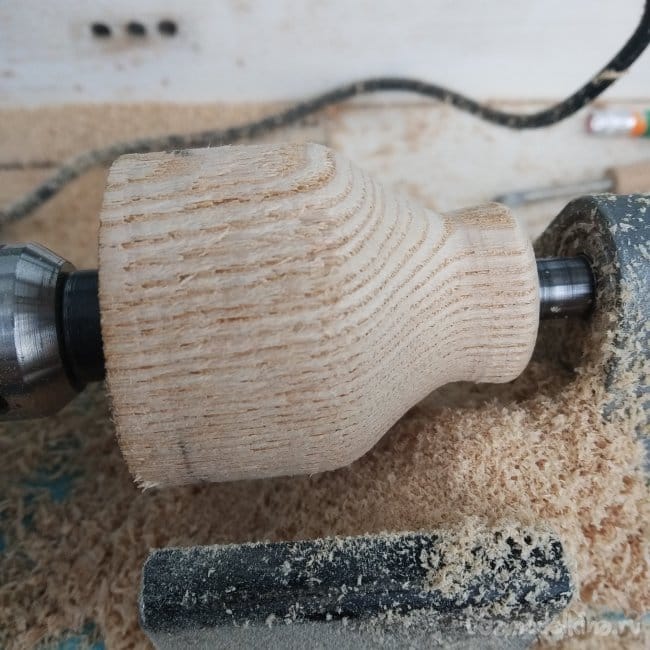 Затем точим широкую, более округлую форму. Для этого я уже использовал более-менее нормальный резец.