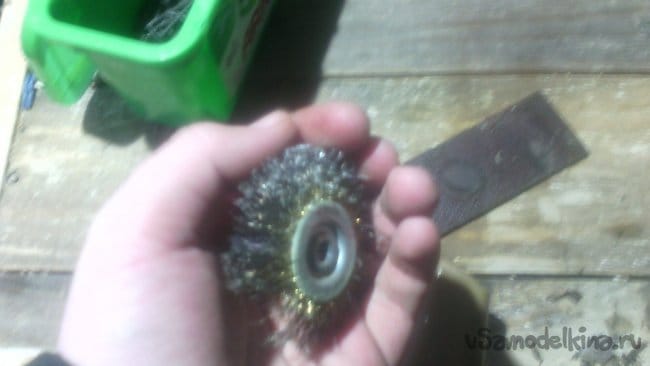 Дальше я взял подошву и залил WD-40 а верней его аналогом подождал дальше я взял корщётку и почистил где смог а где не смог оставил на потом. Да почистил я подошву два раза для верности.