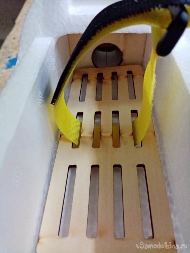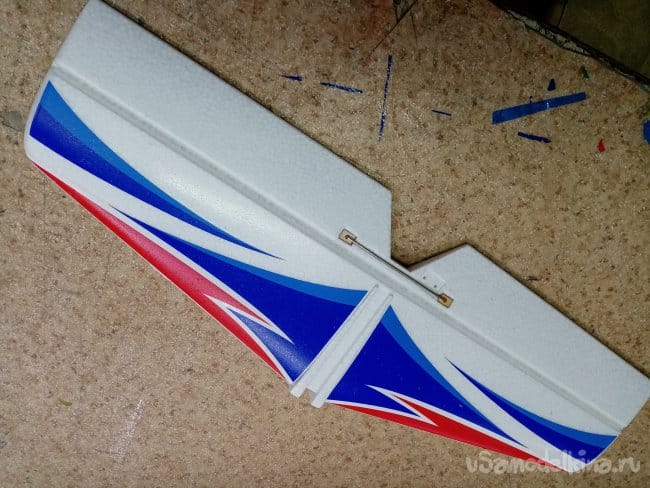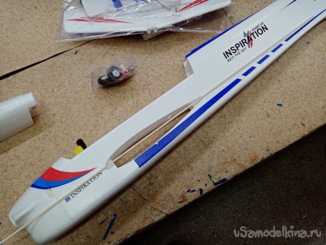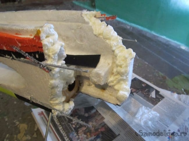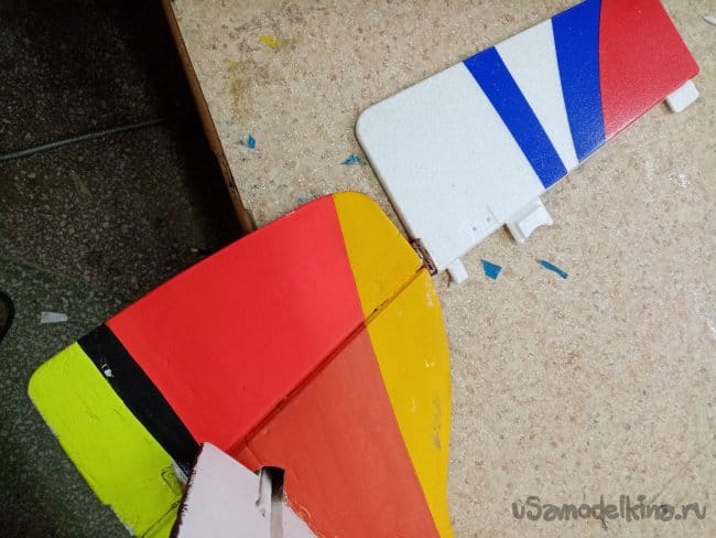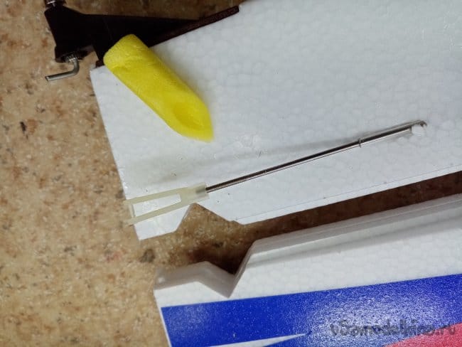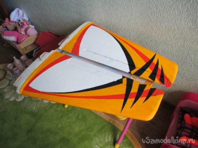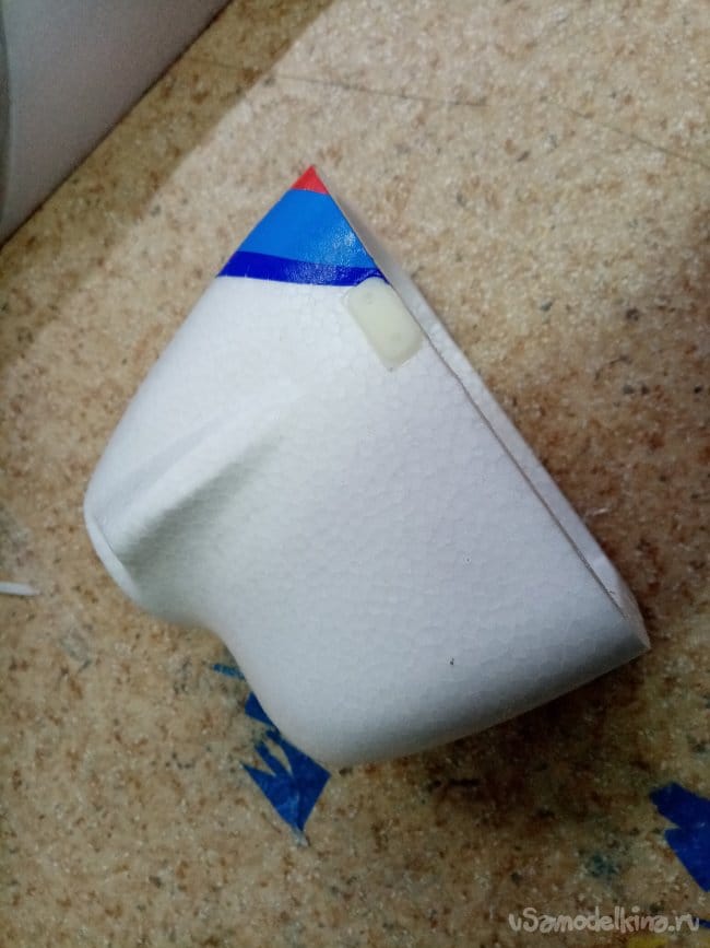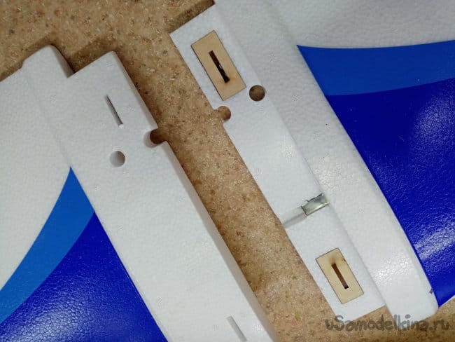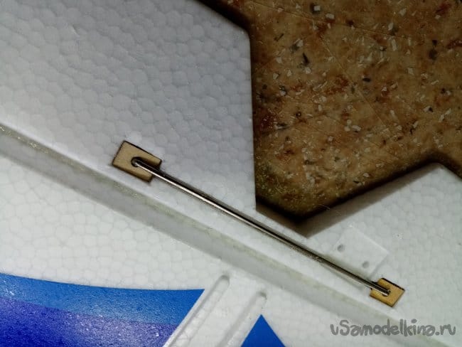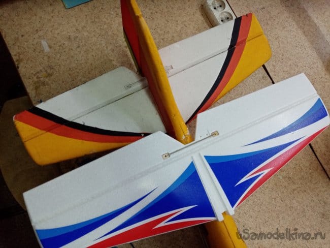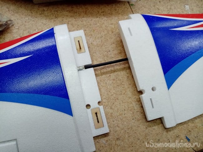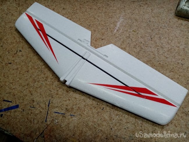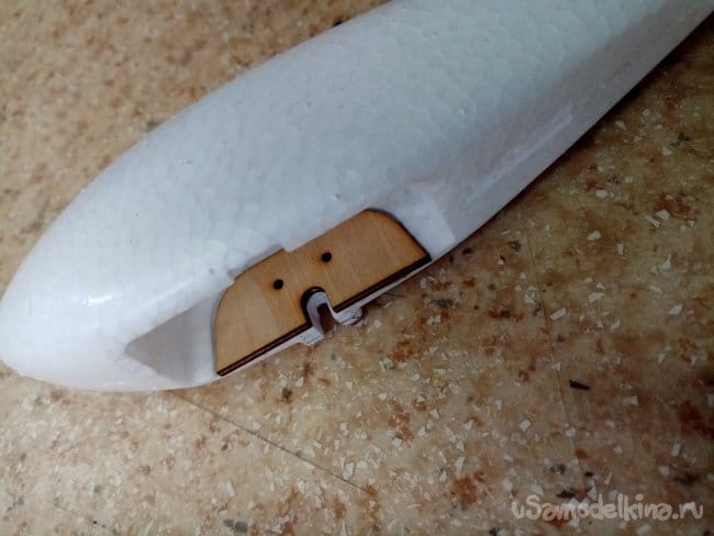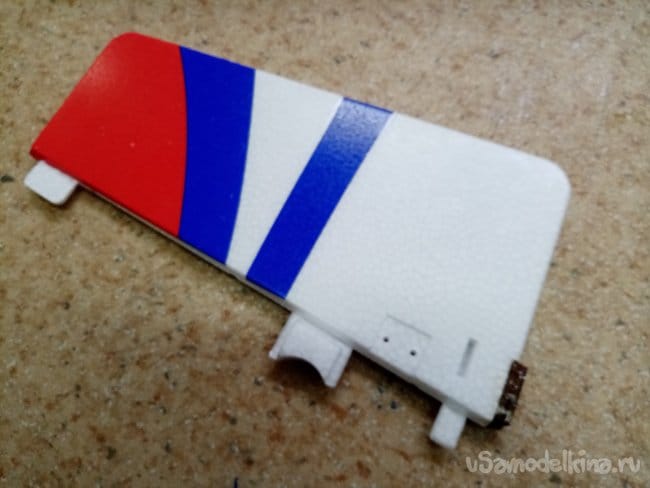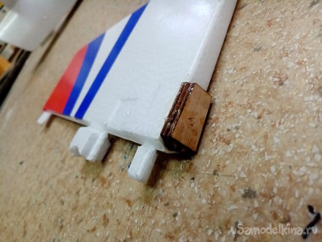 Руль высоты нормально сделан, усиления между правым и левым установлены. И опять на пенопластовые "петли". Это тоже переделаю на нормальные.