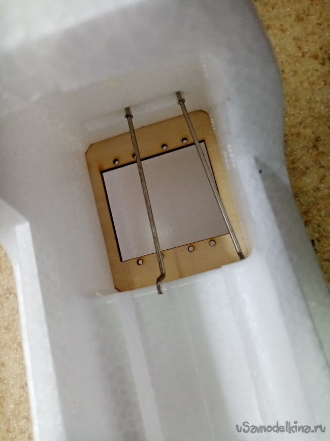 Шасси из проволоки, фиксируются в коробке из фанеры при помощи клина.