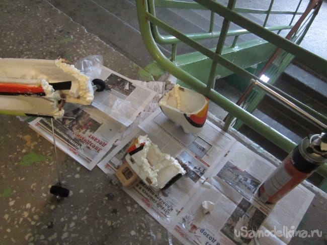 Накладки обтекатели стек и башмаки колес из пенопласта.