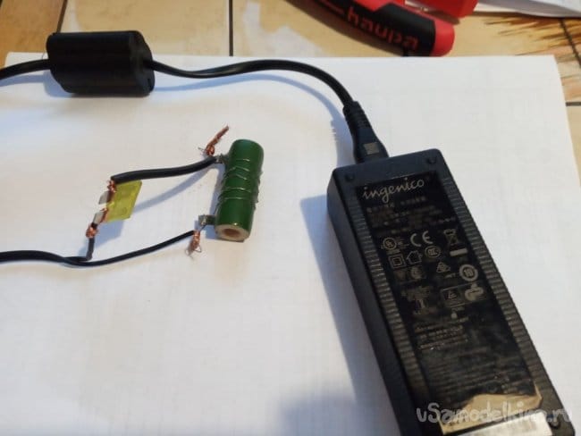 Дома не нашлось мощного блока питания для эксперимента, взял что было, 8 В 3А. в жизни, на мой взгляд, от 12 В будет работать на 1/3 мощнее. У моей машины горлышко бачка узкое, как кувшин, поэтому резистор выбран небольшой. Собственно, и всё. Хорошо бы найти «крокодилы» для цепляния к АКБ, но на крайний случай и так сойдёт. Опытным путём можно подобрать нужное количество витков нихромовой проволоки.