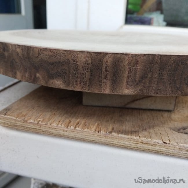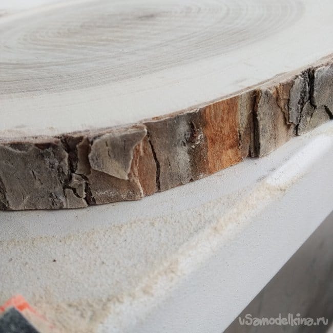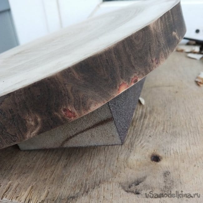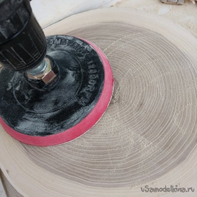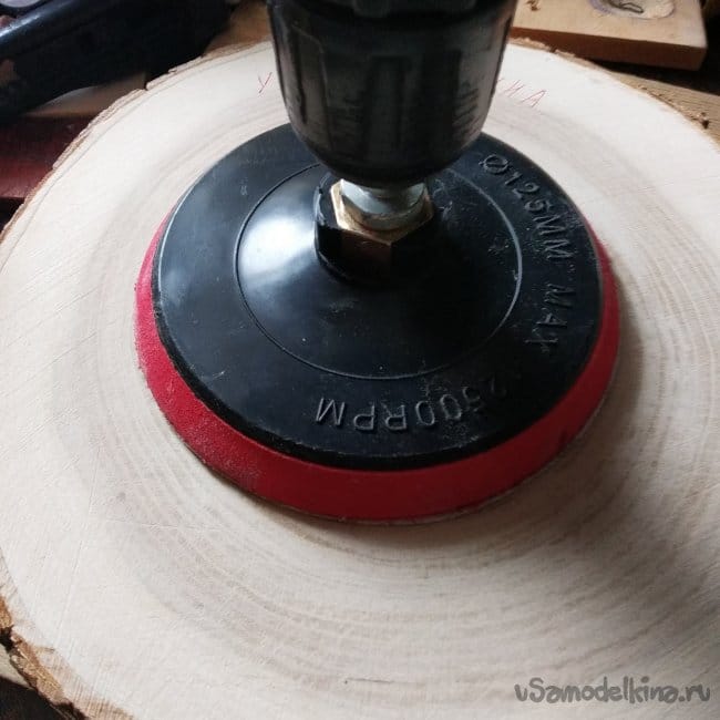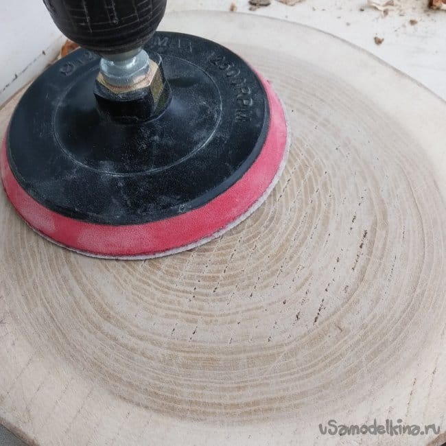 Выравнивать спил я решил с помощью дрели со шлифовальной насадкой. Иногда удобная вещь, правда, только иногда.