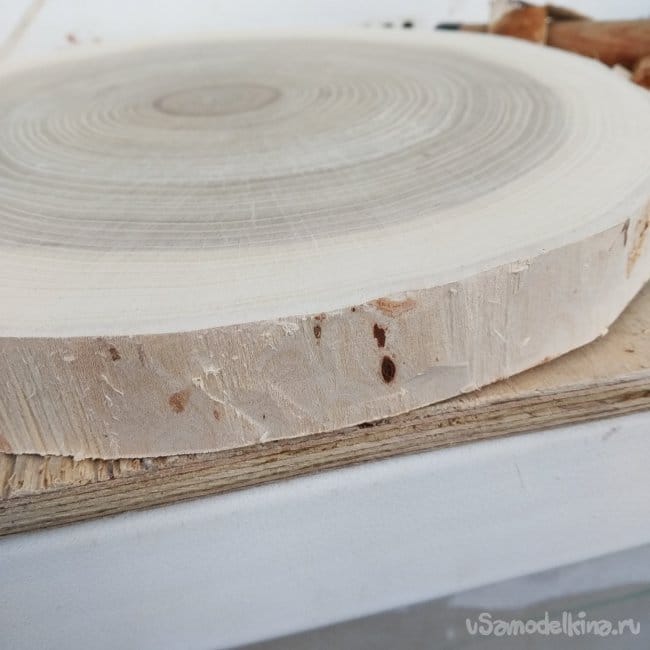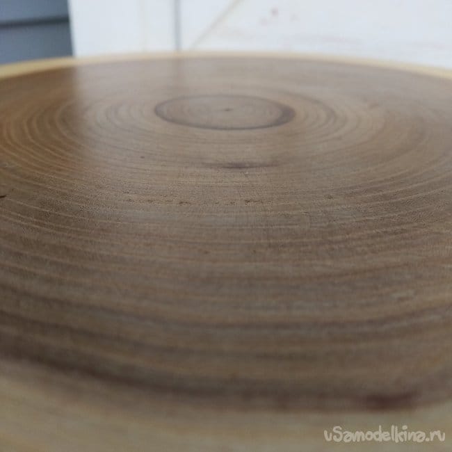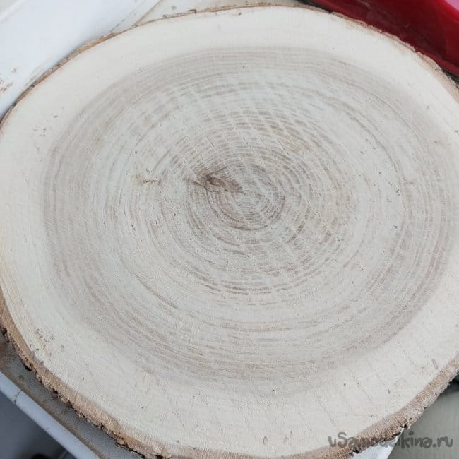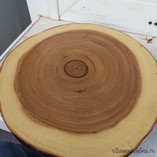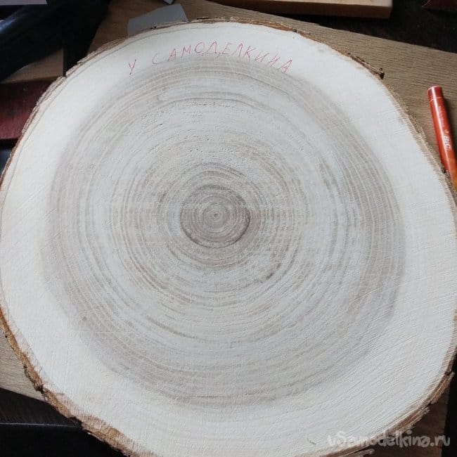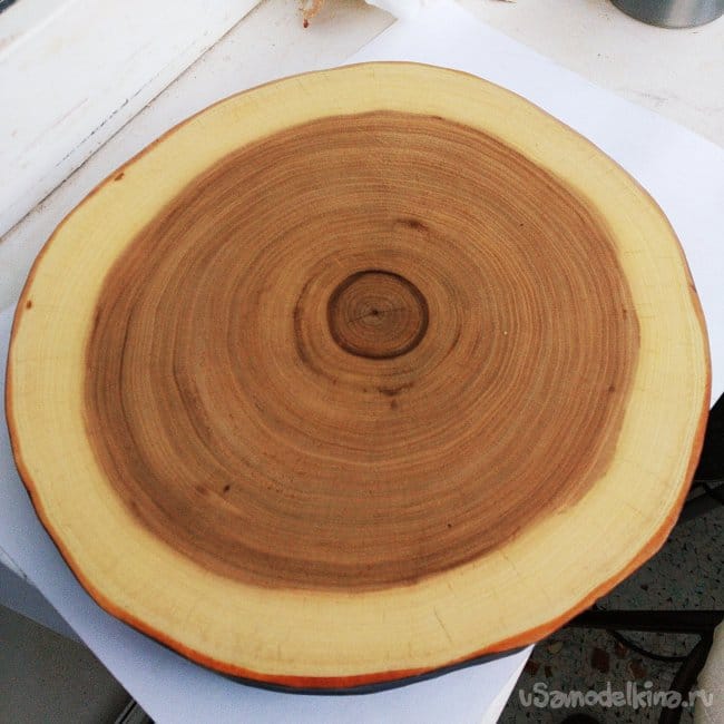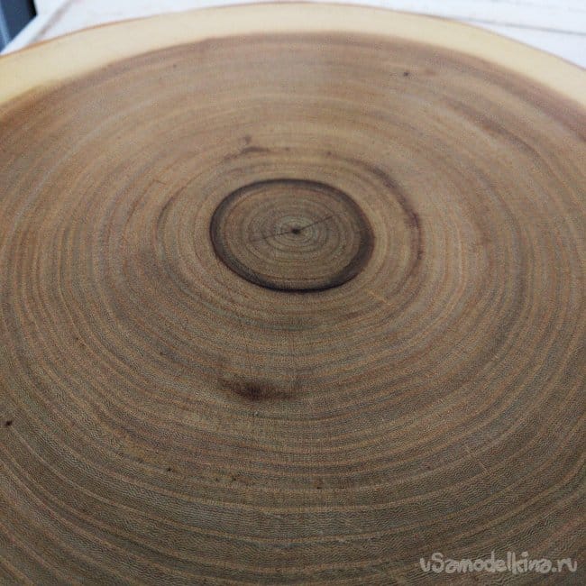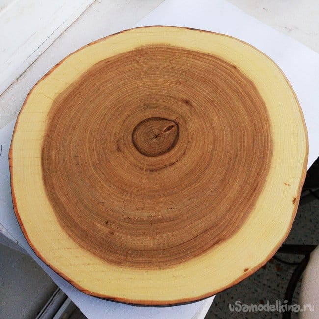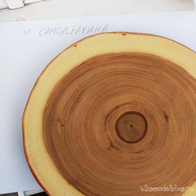 В связи с возрастающей популярностью стиля лофт возрастает популярность панно, столов, разделочных и сервировочных досок и прочего декора из спилов дерева. Я решил подхватить эту волну и изготовить подобного вида сервировочную доску. Ну и после этого переквалифицироваться в более крупную столярку, так как надоело возиться с ювелиркой. Я долго вынашивал идею, как и, главное, из чего сделать подобную утварь, пока, неожиданно для себя, не наткнулся на хороший спил вяза в, казалось бы, обычном небольшом канцелярском магазине. Ну, почти хороший спил. Лучший из худших, в общем. Но, других вариантов у меня не было, так что я взял этот.