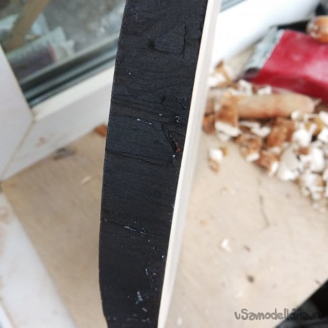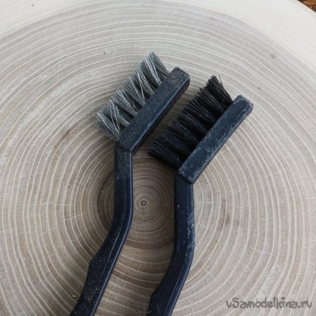 В идеале тут применить щетку для браширования дерева, но и такие щетки справились. Далее я затер края шлифовальными губками.