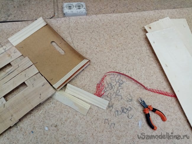Добывается фруктовая фанера на рынке, в магазинах. Немного отойдут с мороза и начинаю разбирать. Металлические скобы извлекаю небольшими тонкогубцами.